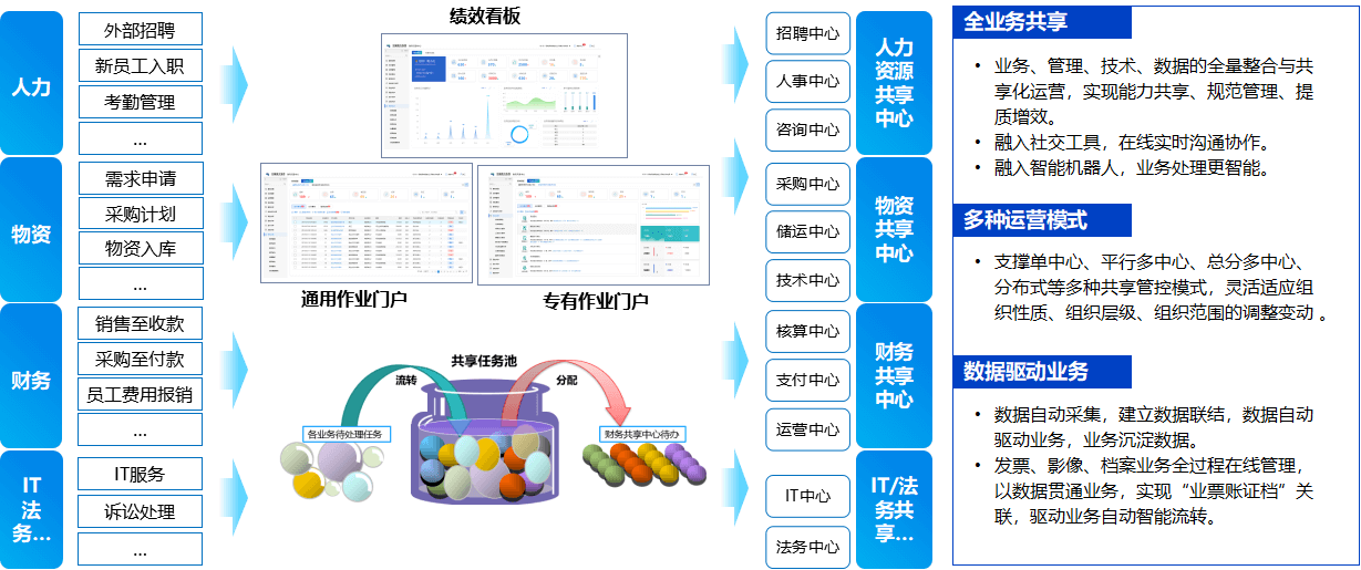 通過服務(wù)分類、服務(wù)目錄、服務(wù)級別、SLA協(xié)議建立多職能共享服務(wù)體系,支撐全業(yè)務(wù)共享。除了支持報賬、應(yīng)收應(yīng)付、資金、稅務(wù)、資產(chǎn)、核算、報表等財務(wù)類業(yè)務(wù)外,同時支持人力、IT、法務(wù)、供應(yīng)鏈等多職能業(yè)務(wù)接入共享中心。