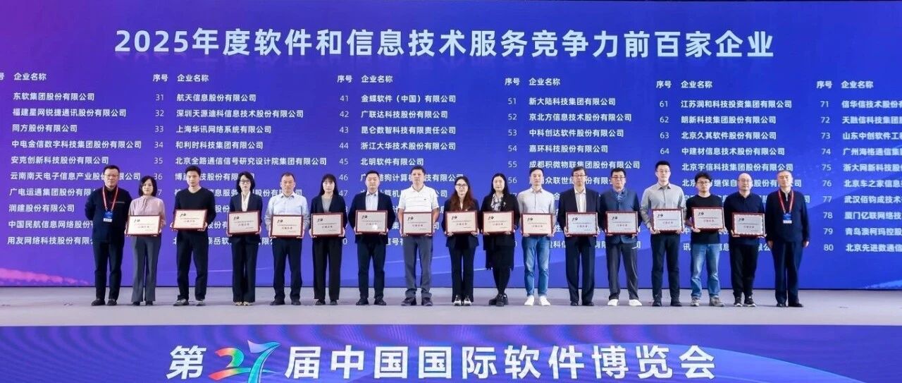 10月15日,在“第27屆中國國際軟件博覽會”上,中國電子信息行業(yè)聯(lián)合會發(fā)布了《2025年度軟件和信息技術服務企業(yè)競爭力指數(shù)報告》,并揭曉了“2025年度軟件和信息技術服務競爭力前百家企業(yè)”名單。遠光軟件成功入選“...