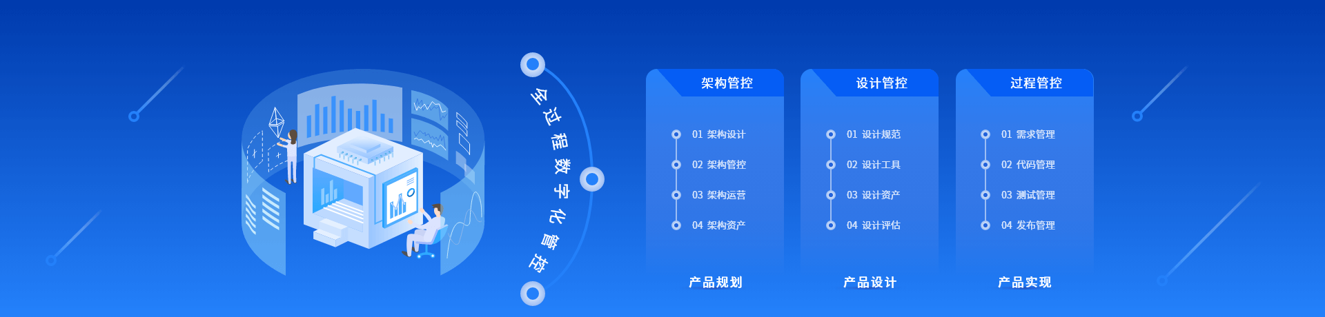 通過(guò)企業(yè)架構(gòu)管控、設(shè)計(jì)開(kāi)發(fā)管控、用戶體驗(yàn)管控、研發(fā)過(guò)程管控,幫助企業(yè)實(shí)現(xiàn)從戰(zhàn)略規(guī)劃到可研立項(xiàng)、從業(yè)務(wù)需求到應(yīng)用設(shè)計(jì),從系統(tǒng)開(kāi)發(fā)到交付運(yùn)維的全棧技術(shù)管控,增強(qiáng)企業(yè)數(shù)字化管控力度,提升數(shù)字化建設(shè)質(zhì)量。