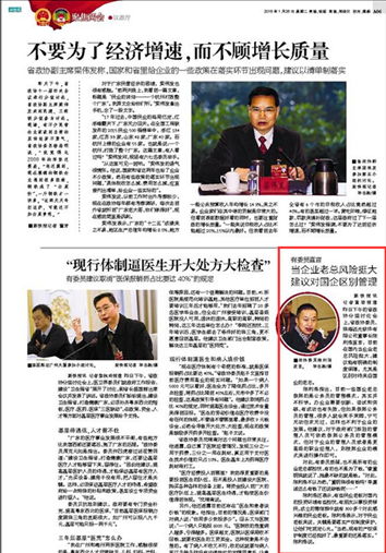 昨日下午的省政協(xié)分組討論會上,省政協(xié)委員、珠海遠(yuǎn)光軟件有限公司董事長陳利浩直言,目前在國內(nèi)當(dāng)企業(yè)老總風(fēng)險挺大,建議能有明確的制度保障,尤其是區(qū)別對待來自國企的老總。