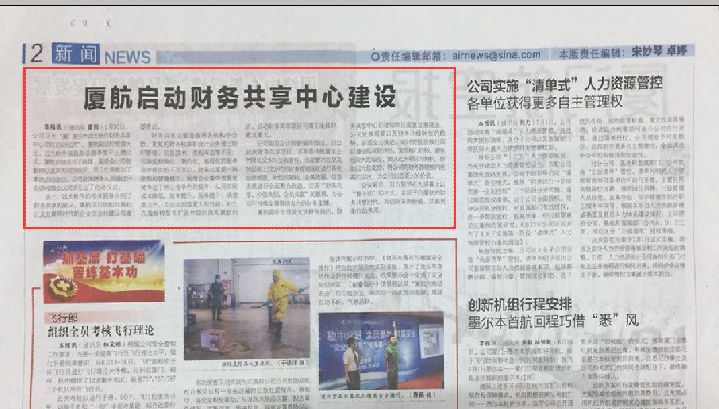 《廈門航空?qǐng)?bào)》 廈航啟動(dòng)財(cái)務(wù)共享中心建設(shè)