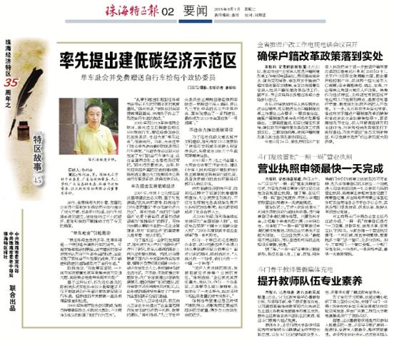 為了推動這一全新的發(fā)展模式,陳利浩下大力氣對“低碳經(jīng)濟(jì)”進(jìn)行了研究,在深入調(diào)研的基礎(chǔ)上向市政協(xié)提出提案。同時,還自費(fèi)聘請了國內(nèi)外專家到珠海實(shí)地考察,編寫并自費(fèi)印刷《低碳100》小冊子派發(fā)社會人士,積極倡導(dǎo)低碳生活方式。向市委、市政府提出專題報告;向廣東省委提出《創(chuàng)新發(fā)展模式,建設(shè)低碳廣東》的建議,時任省委書記汪洋同志兩次批示,以此形成的調(diào)研報告奠定了廣東作為全國低碳示范省的基礎(chǔ)。