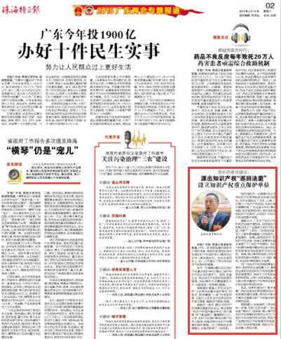 《珠海特區(qū)報(bào)》陳利浩建議:派出知識(shí)產(chǎn)權(quán)“巡回法庭” 設(shè)立知識(shí)產(chǎn)權(quán)重點(diǎn)保護(hù)單位