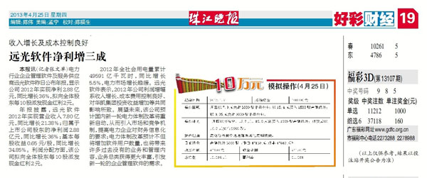 電力行業(yè)企業(yè)管理軟件及服務(wù)供應(yīng)商遠(yuǎn)光軟件昨日公布年報(bào),顯示公司2012年實(shí)現(xiàn)凈利2.88億元,同比增長(zhǎng)36%,擬向全體股東每10股派發(fā)現(xiàn)金紅利2元。