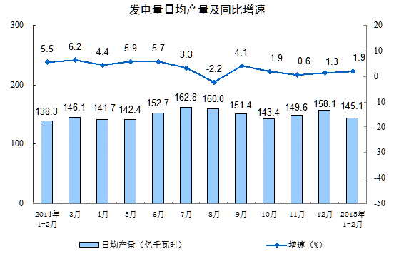從行業(yè)增加值看,1-2月份電力生產(chǎn)和供應(yīng)同比增長(zhǎng)3.1%。