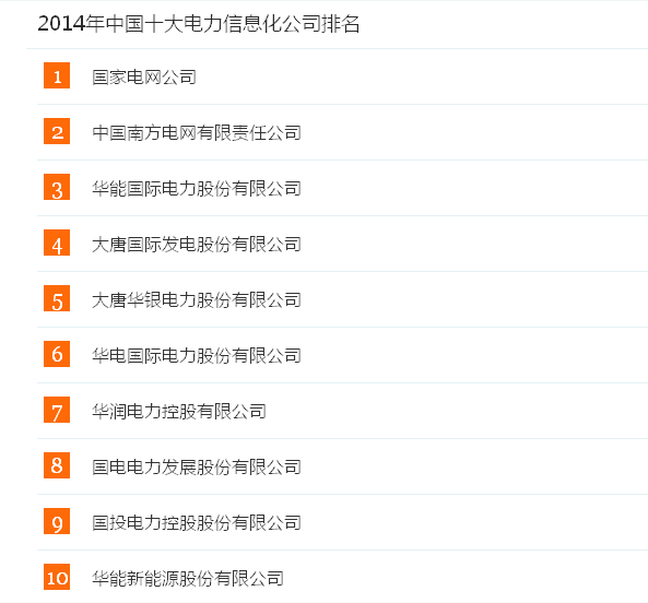 2014年中國電力行業(yè)十大電力信息化公司排名