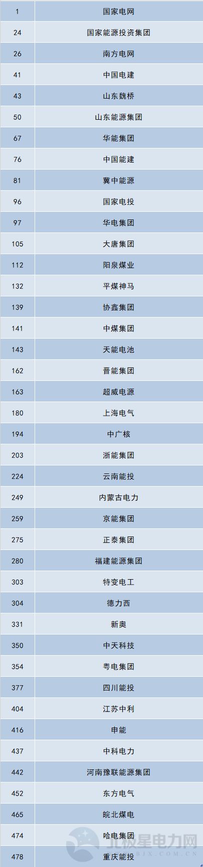 電力行業(yè)企業(yè)排名(北極星電力網(wǎng)不完全統(tǒng)計):