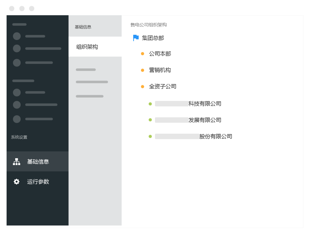 【支持多組織集團管控】支持集團-管理范圍-中間單位-底層單位-部門的多組織管控,助力配售電業(yè)務快速擴張。