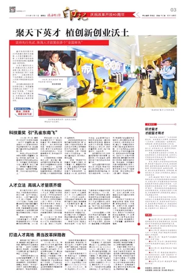 珠海特區(qū)報:聚天下英才 植創(chuàng)新創(chuàng)業(yè)沃土