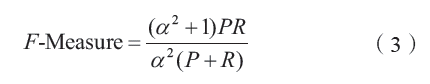 式中,α是用來衡量精確率和召回率的相對重要性的參數(shù),本文將精確率和召回率視為同等重要,即α取值為1,故F-Measure故為F1: