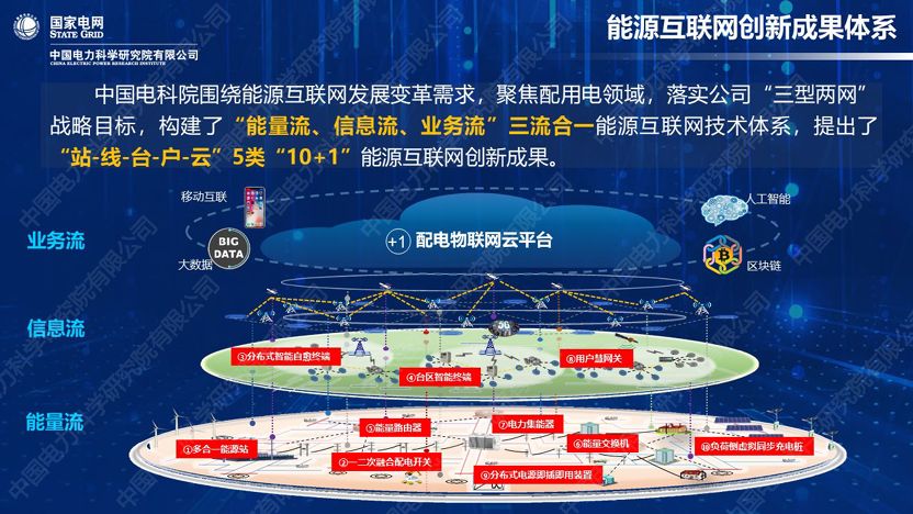 會議期間,中國電科院圍繞能源互聯(lián)網(wǎng)發(fā)展變革需求,聚焦配用電領(lǐng)域,落實公司“三型兩網(wǎng)”戰(zhàn)略目標,構(gòu)建了“能量流、信息流、業(yè)務流”三流合一能源互聯(lián)網(wǎng)技術(shù)體系,提出了“站-線-臺-戶-云”5類“10+1”能源互聯(lián)網(wǎng)創(chuàng)新成果。