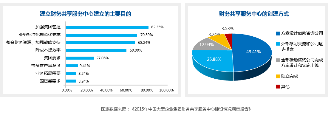 2016年,北京國(guó)家會(huì)計(jì)學(xué)院發(fā)布《管理會(huì)計(jì)轉(zhuǎn)型始于財(cái)務(wù)共享服務(wù)--2015年中國(guó)大型企業(yè)集團(tuán)財(cái)務(wù)共享服務(wù)中心建設(shè)情況調(diào)查報(bào)告》,指出大型集團(tuán)企業(yè)已經(jīng)認(rèn)識(shí)到建立財(cái)務(wù)共享服務(wù)中心的意義。而其中,加強(qiáng)集團(tuán)管控,提高業(yè)務(wù)標(biāo)準(zhǔn)化、規(guī)范化和整合財(cái)務(wù)資源加強(qiáng)戰(zhàn)略支持是企業(yè)的核心訴求。在財(cái)務(wù)共享服務(wù)中心的創(chuàng)建方面,集團(tuán)企業(yè)相信外部經(jīng)驗(yàn)的引進(jìn)能夠更好、更快的推動(dòng)企業(yè)財(cái)務(wù)共享服務(wù)中心的建設(shè)。